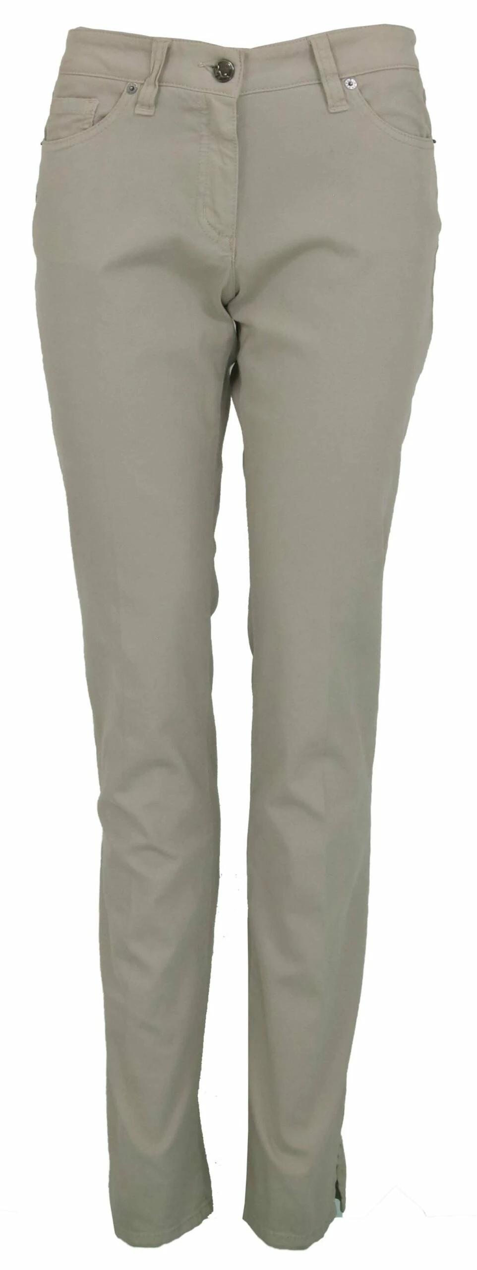 Een broek van Airfield in de kleur beige. De broek is in een 5 pocket model. Op de achterzakken zijn fijne strassteentjes. Deze broek mag op 30 graden worden gewassen.