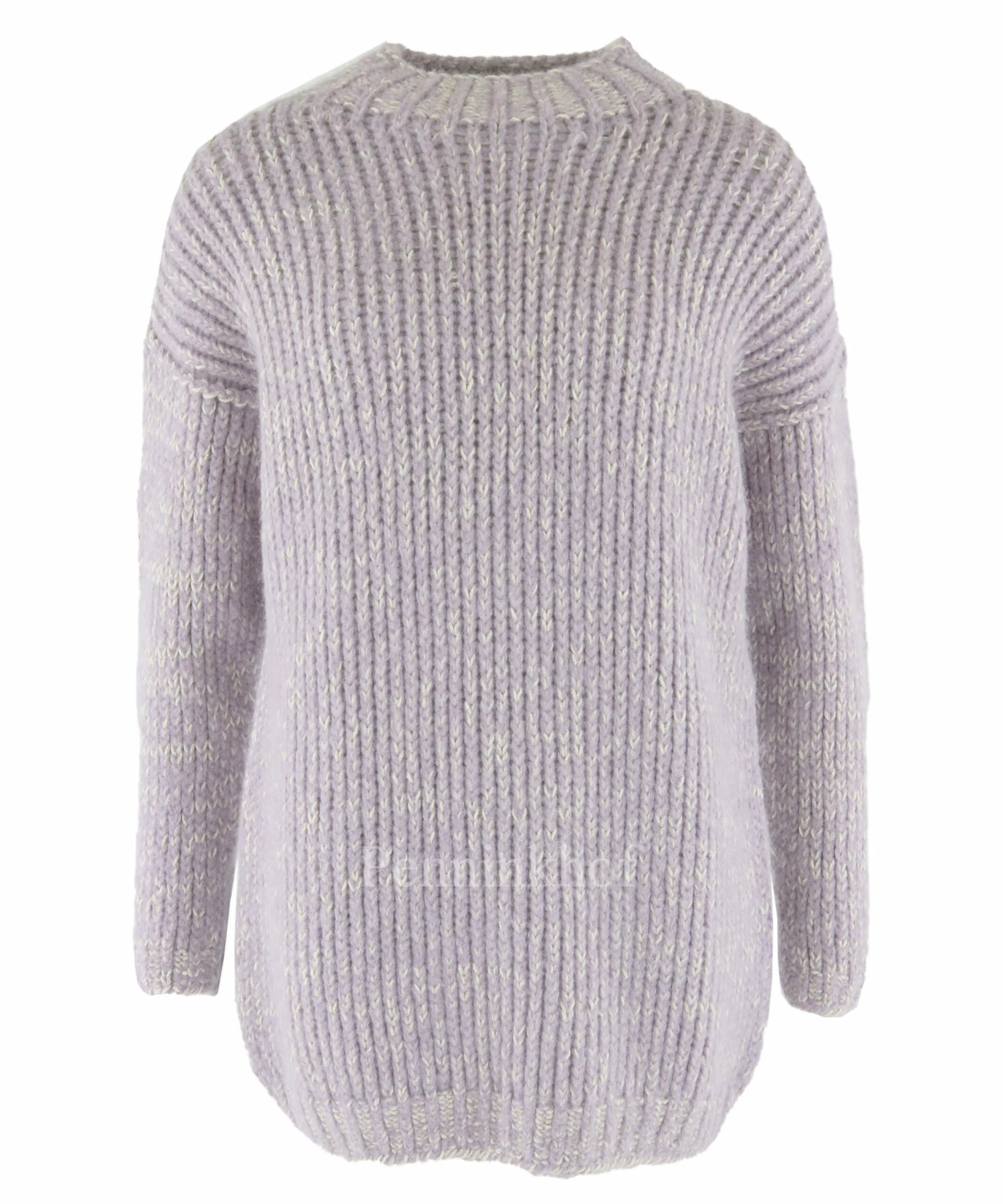 Een gemêleerde pullover van Annette Görtz in de kleuren lila met roomwit. De pullover heeft een turtle hals. Deze pullover mag op de hand worden gewassen.