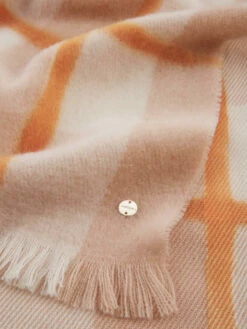 Een shawl van Annette Görtz met een text print in de kleuren donkergrijs en roomwit. Aan de uiteinden van de shawl zijn lange franjes. Deze shawl mag niet worden gewassen.