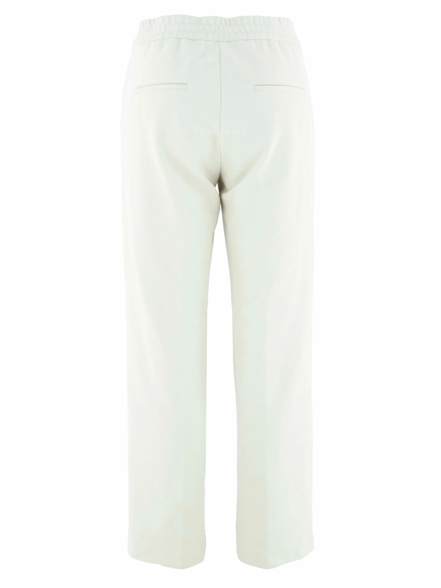 Een joggingbroek van Cambio in de kleur roomwit. In de taille is een elastieken band met met een koord in een tunnelverwerking. De broek heeft steekzakken en mag op de hand worden gewassen.