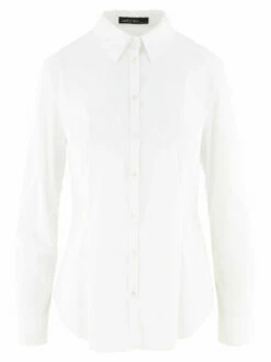 Een basis blouse van het merk Marc Cain in de kleur wit De blouse heeft brede manchetten van 8 cm lang. Deze blouse mag op 30 graden worden gewassen.