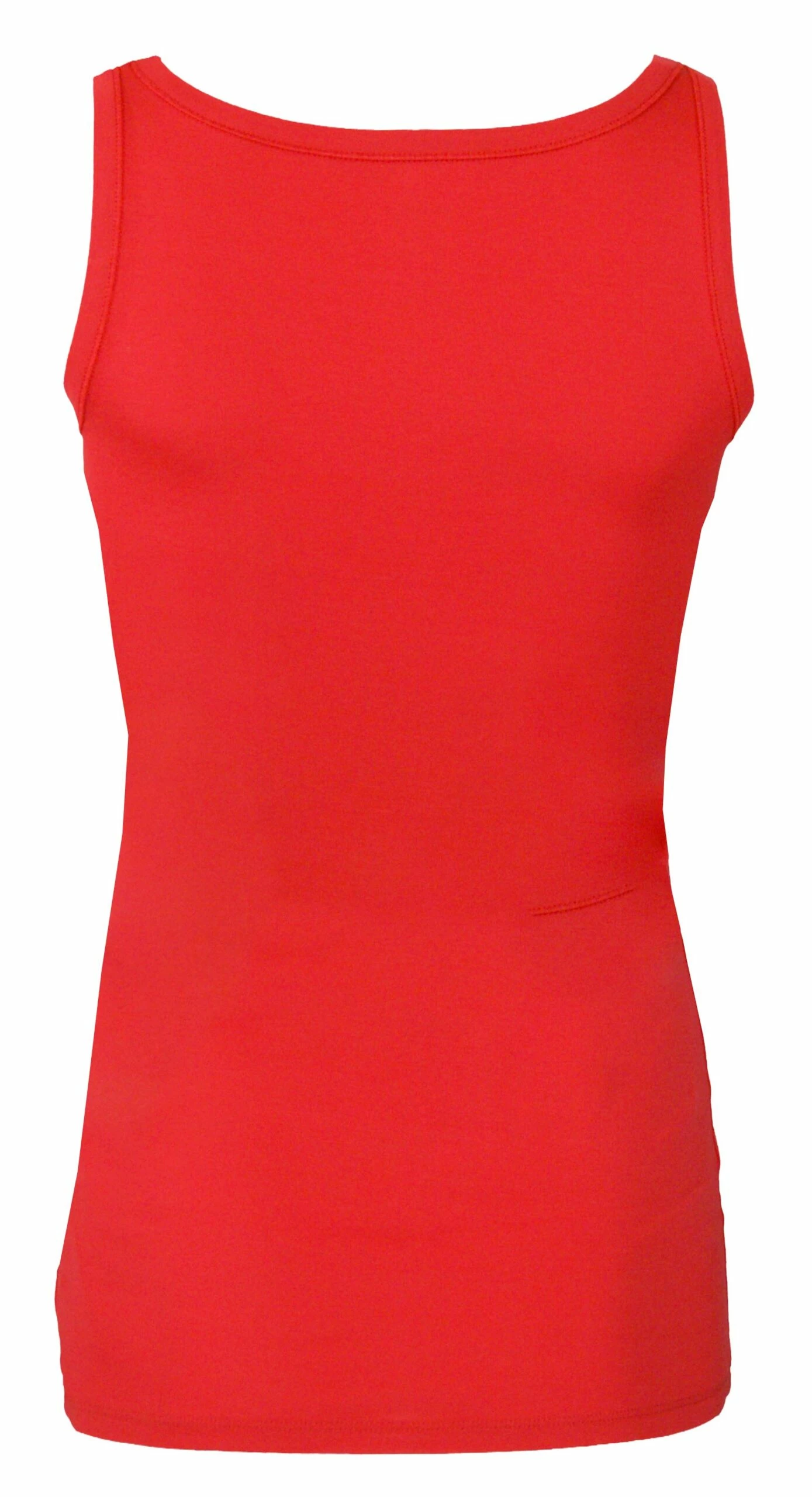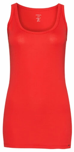 Een top van het merk Marc Cain uit de essentiels collectie in de kleur rood. De top heeft een ronde hals en een schouderband van 3 cm breed. Deze top mag op 30 graden worden gewassen.