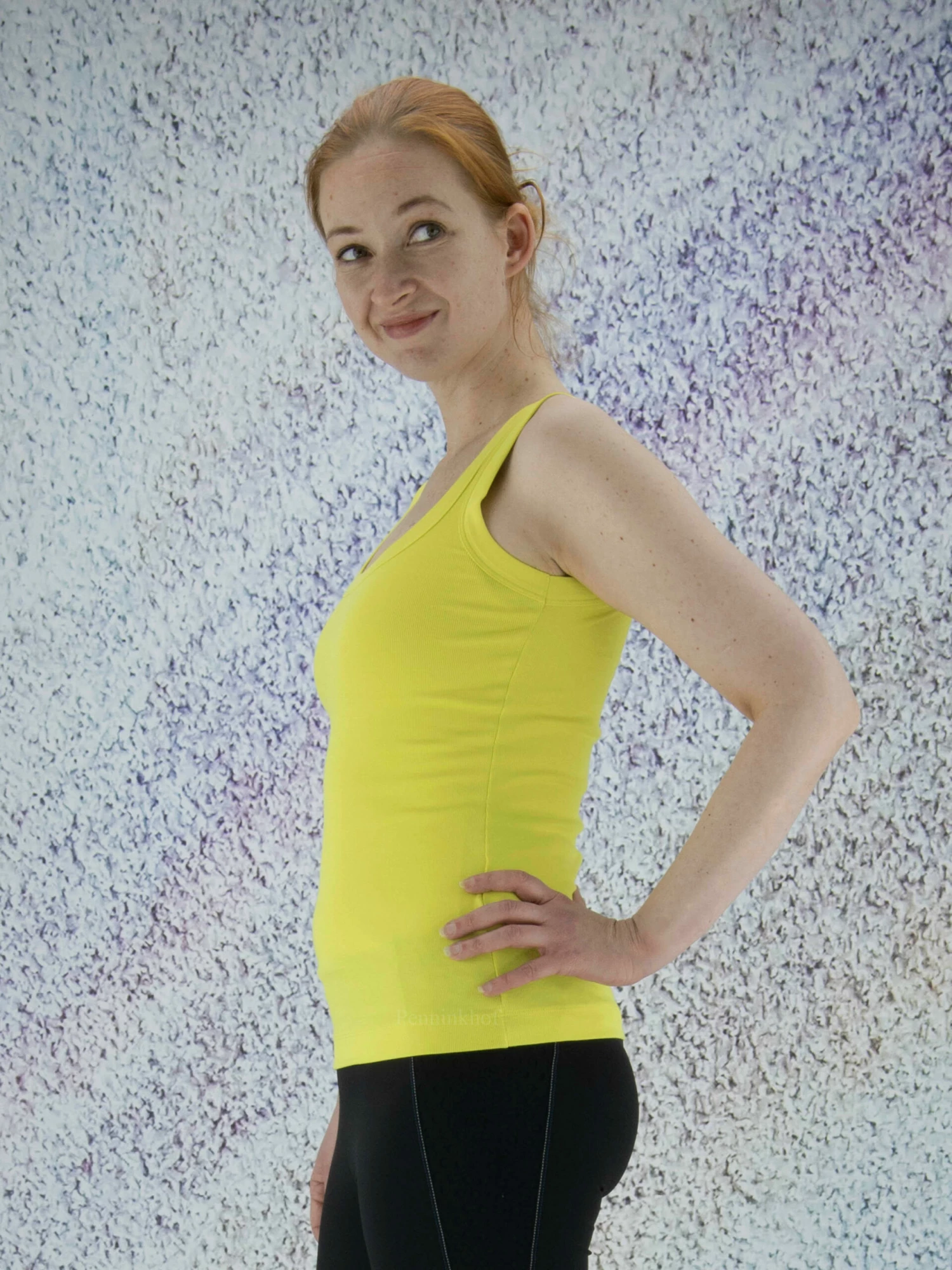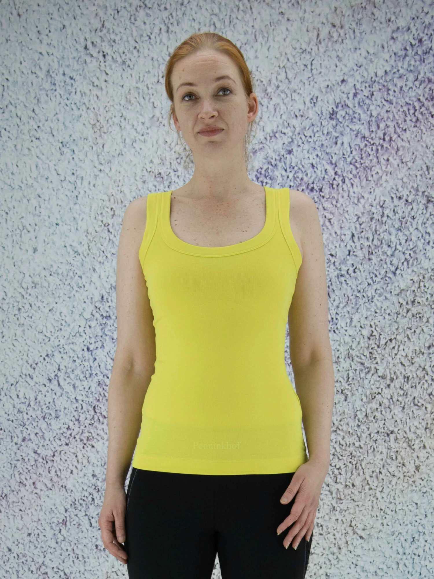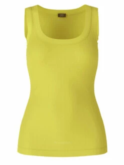 Een top van Marc Cain in een limoen gele kleur. De top heeft een ronde hals en mag op 30 graden worden gewassen.