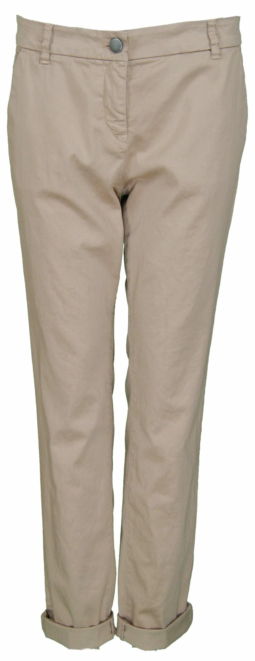 Een broek van het merk Marc Cain in de kleur zalm rose. De broek heeft 2 steekzakken en is recht gesneden. Aan de onderzijde is een smalle omslag van 3 cm breed. Deze broek mag op 30 graden worden gewassen.